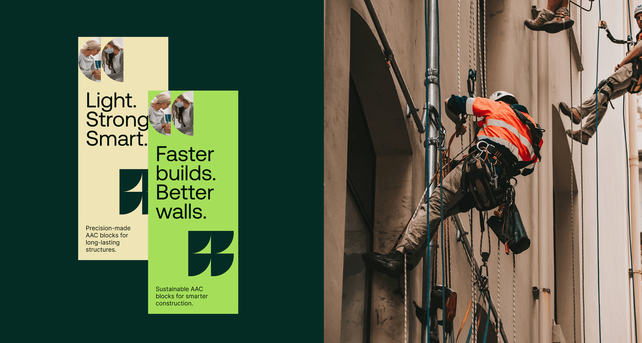 The challenge was to position a new AAC block manufacturer as both reliable and modern while simplifying technical information for builders and contractors. The final system combines clear branding, data-driven messaging, and a performance-oriented website designed to drive inquiries and build trust.